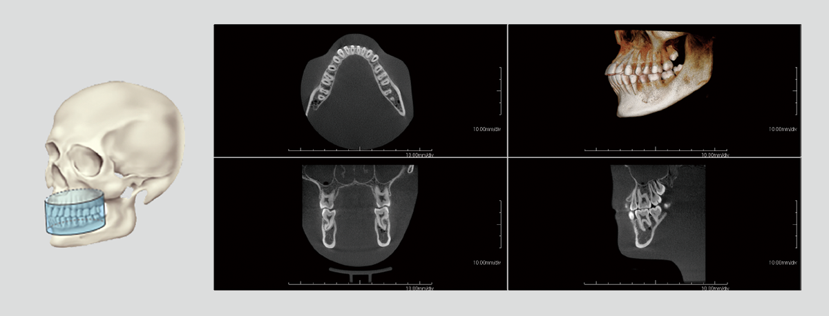 The precise and high-resolution display of hard and soft tissue enables outstanding diagnostics and planning across all areas of modern dentistry and maxillofacial surgery. A large high-definition FPD allows all FOVs scanned in a single rotation without using stitching function.